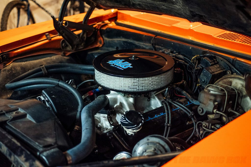 The only modifications done to Curt’s engine is the addition of a custom painted carburetor hat (with Hill’s Rod and Custom) with an aluminum intake manifold under that and a set of custom painted valve covers. The only other modification was the addition of a set of trac bars under the leaf springs to help alleviate wheel hop. Other than that, it’s pretty much as he found it. The reason it looks as good as it does is due to it being in storage since 1988. He purchased the car and, other than the carb hat and valve covers, put on a new set of Milestar Streetsteel tires sized in P235/60R15. While these are P-metric sized tires, they are the closest to match the classic look and style of the of the 15×7 Z/28 Rally style wheels while offering modern radial tire construction.