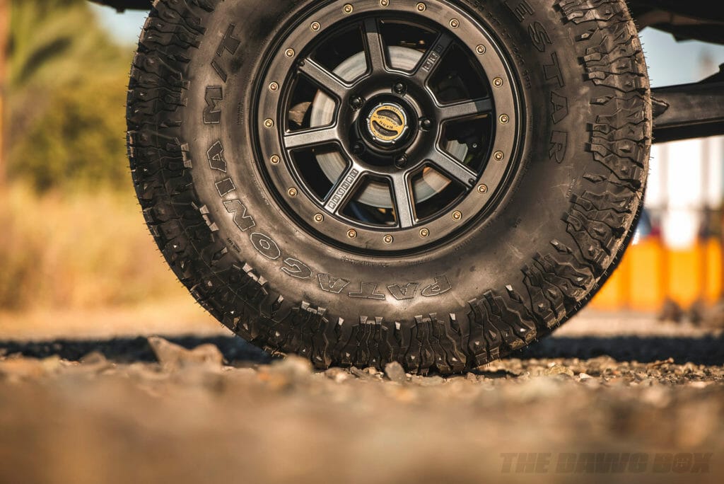 That power gets split to Dana 44 differentials front and rear. Both diffs are loaded with ARB Air Lockers for the extra bite that is sometimes needed. All that traction leads down to a full set of 37-inch Milestar Patagonia M/T rubbers wrapped around 17-inch Level 8 Bully Pro Lock Wheels. On why he chose the Patagonias, Bryan said: “they look killer, have great traction and are very quiet on the road.”