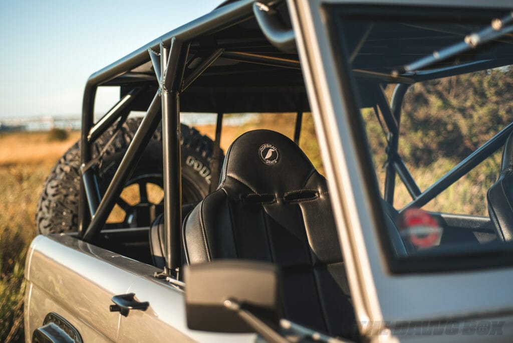 The interior of the Bronc’ is loaded too. The fully Rhino lined interior sports an all-new electrical system with a MegaSquirt MS3 Pro computer and Flaming River tilt steering column. A Pioneer head-unit drives JBL speakers for classic tunes on any trail while riders are sitting comfortably in a set of Corbeau racing seats.