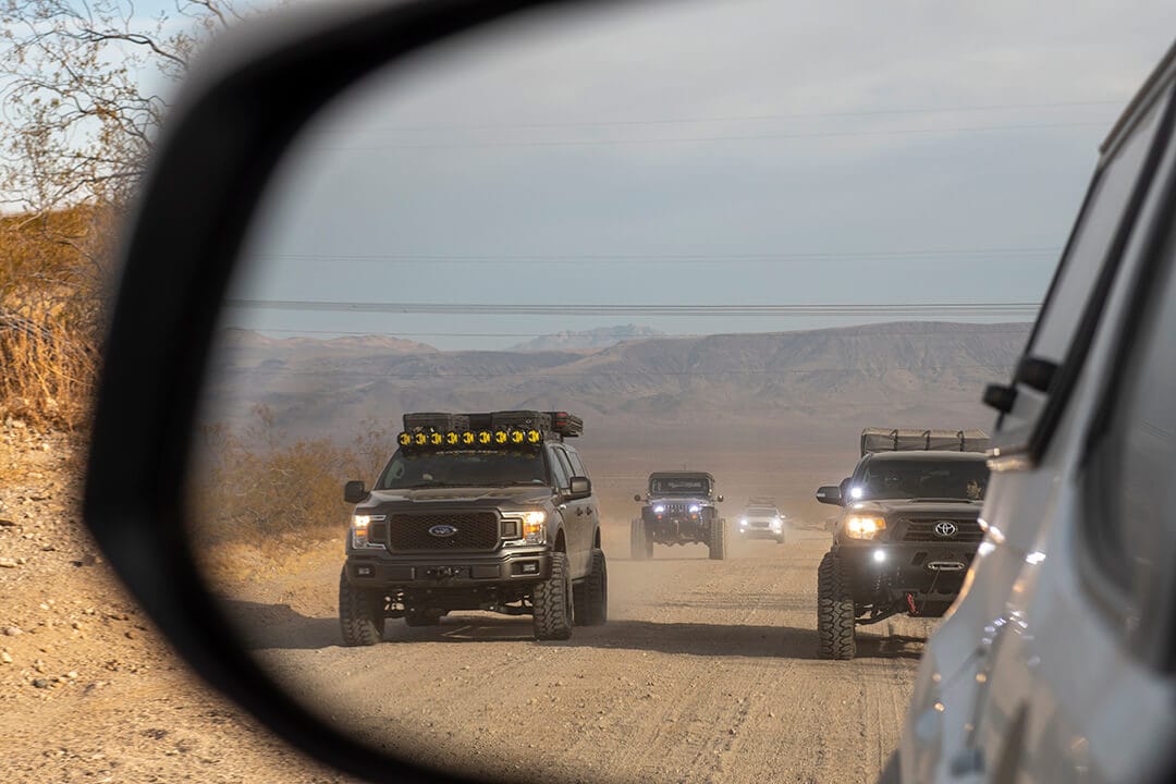 Friday morning came quick, and by sunrise everyone was already in their rigs, gassed up and exhilarated for the day ahead. One by one, the rigs headed out of the parking lot and onto the road. The first stop was an exciting one, a stop to air out. Over thirty vehicles were lined up along a dirt road, the sound of air being let out of the tires audible from every direction.