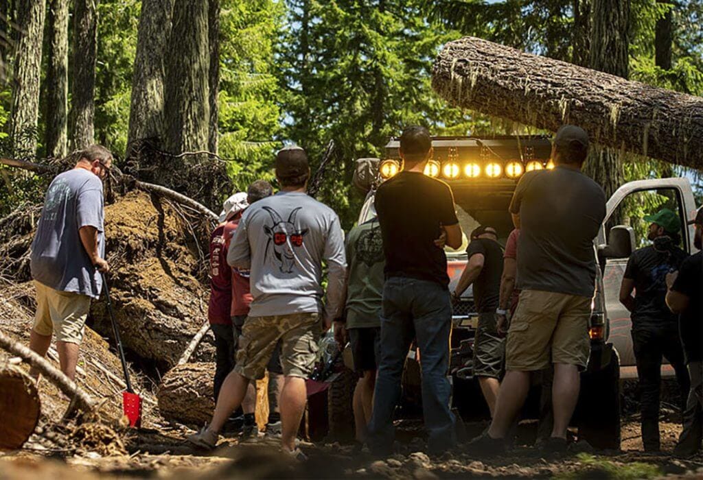 As beautiful and majestic as the giant trees appear, however, they can also pose hazard to this route as the crew found out. Dozens of pines had fallen across the trail at some point, and while they were cut and moved by locals who maintain the trail, there was just room enough room to squeeze a UTV through. With full-size pickups, SUV’s and a passenger van needing to get by, the crew had to pull together to make their way through. The two-hour ordeal included plenty of cutting, winching and shoveling in order to clear the way, but they made it thanks to their combined variety of onboard tools and teamwork most of all.