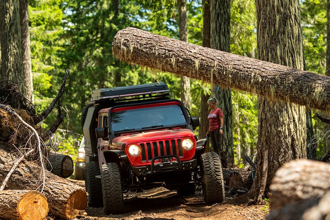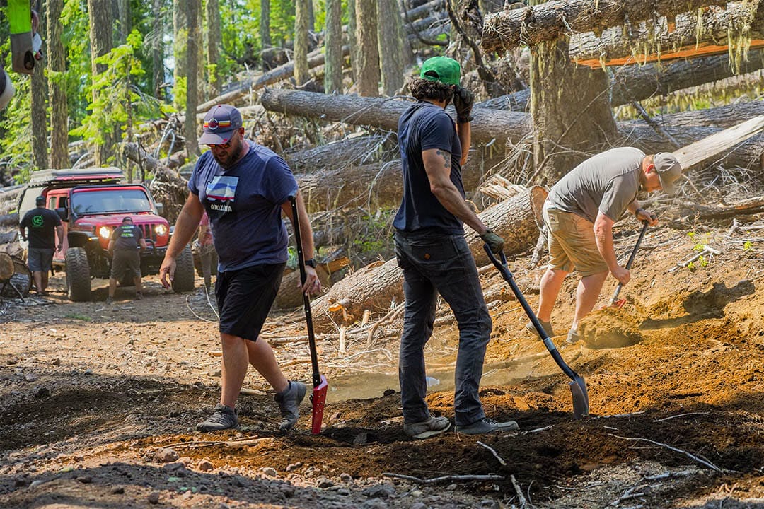 As beautiful and majestic as the giant trees appear, however, they can also pose hazard to this route as the crew found out. Dozens of pines had fallen across the trail at some point, and while they were cut and moved by locals who maintain the trail, there was just room enough room to squeeze a UTV through. With full-size pickups, SUV’s and a passenger van needing to get by, the crew had to pull together to make their way through. The two-hour ordeal included plenty of cutting, winching and shoveling in order to clear the way, but they made it thanks to their combined variety of onboard tools and teamwork most of all.