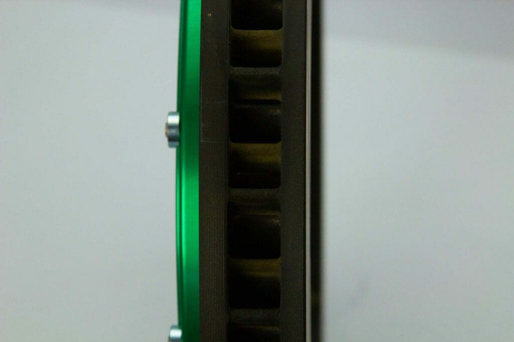 Sin embargo, si desea la máxima rigidez pero desea reducir el peso, debe considerar un rotor de dos piezas con un sombrero de aluminio, como puede ver aquí. El sombrero de aluminio reduce significativamente el peso del rotor ya que esa gran masa de metal es de un material más ligero. También obtiene la capacidad de cambiar las caras y el material del rotor sin cambiar los sombreros del rotor y este tipo de sombrero puede permitirle trabajar con un diseño personalizado simplemente cambiando el sombrero en lugar de todo el rotor. Esto tiene un aumento de precio en comparación con un sombrero y un rotor sólidos, pero si busca la máxima ligereza, el precio generalmente no es una preocupación en ese momento.