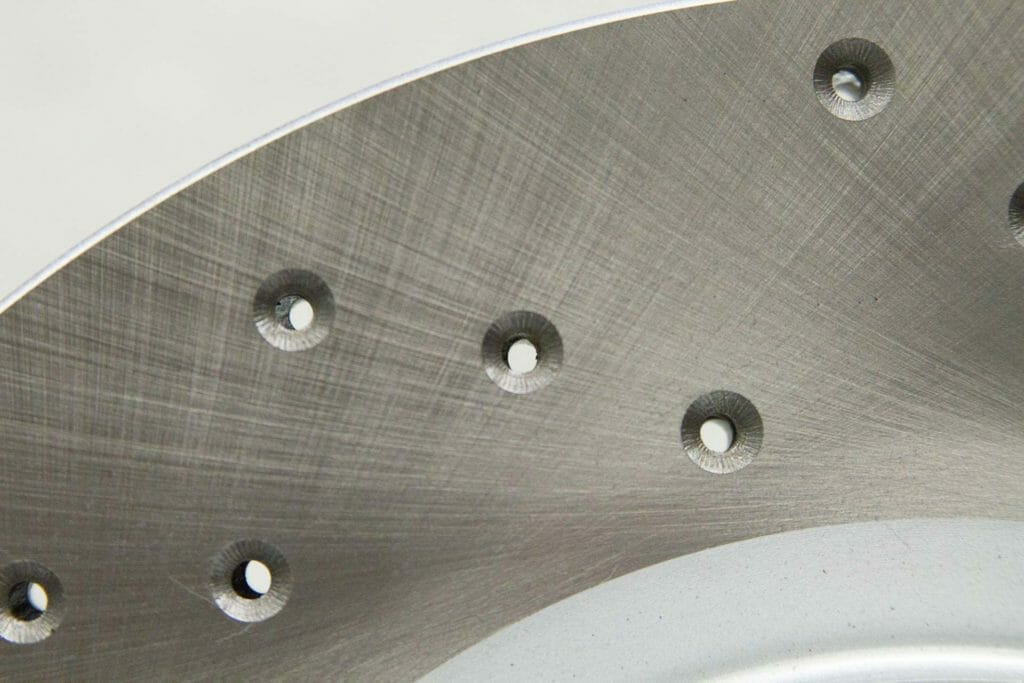 La combinación de ranurado y perforado busca obtener las ventajas de ambos: la máxima desgasificación de un rotor perforado en cruz y la limpieza de la superficie de fricción del rotor ranurado, al tiempo que conserva parte de la rigidez del diseño del rotor ranurado. Sin embargo, si no experimenta ningún problema de desgasificación con los rotores sólidos, no está ganando mucho en términos de rendimiento al cambiar a cualquiera de las versiones. También perderá área de superficie que ayuda a enfriar los rotores de los frenos.