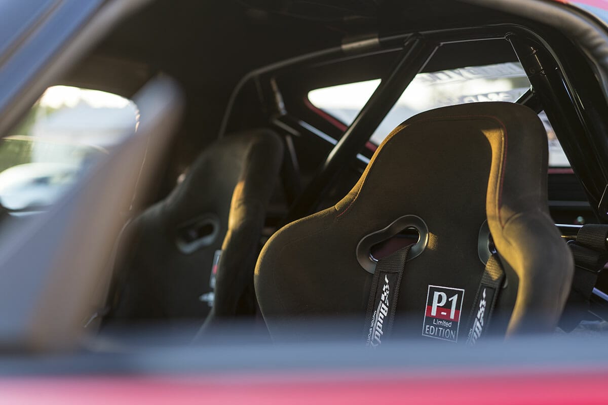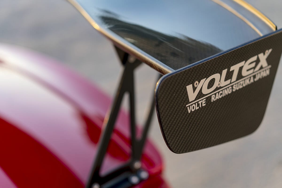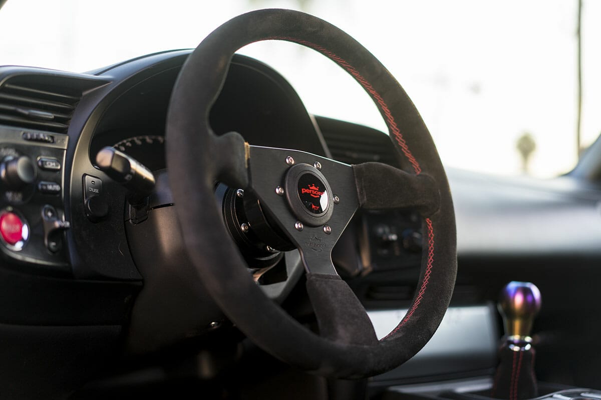 The body is also just modified to fit the wider wheels and Milestar Tires under the body with a set of Voltex Fender Flares. A custom Sportcar Motion front splitter is made to fit the ASM I.S. Design Aero front bumper. This bumper and splitter combination is designed to allow enough air to flow around the body but also keep it flowing to the Koyo Racing Radiator to keep the engine cool. The Voltex Wing, J’s Racing Rear Diffuser, Password JDM Canards, and Downforce Side Skirt Diffuser all improve the flow of the air around the body, but the Seibon Carbon Hood and Hardtop help reduce its weight.