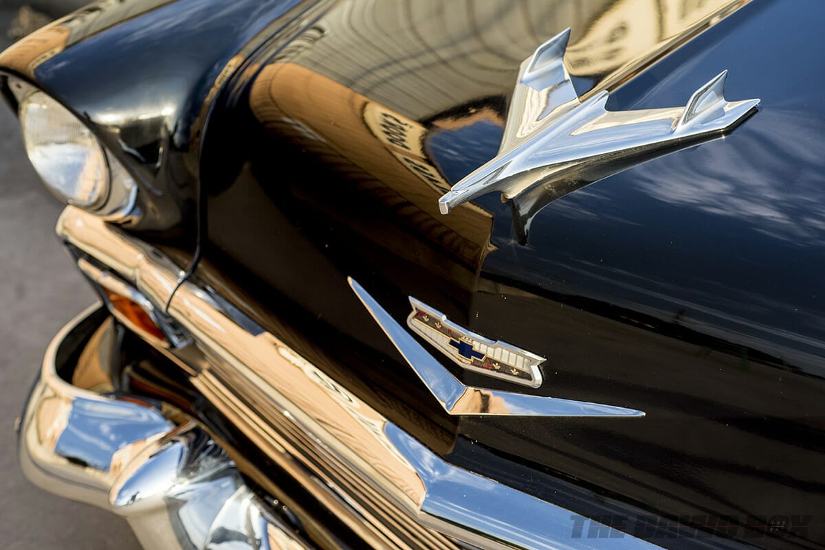If you’ve ever had the pleasure of driving a Tri-Five (55-57) Chevy, you know how great the view is from behind the wheel. The wide curved glass windshield and the high seating position make the outside world into a panorama, like a widescreen TV that you can drive right through. A Bel Air or 250 is almost the world’s best road trip car. Almost? Enter the Chevy Nomad.  It’s got all the style and chrome of the famous Bel Air, but that station wagon rear makes you want to throw a surfboard on the roof, a friend or five in the back, and spend an entire summer, or maybe a lifetime just traveling the country watching the world over that chrome jet on the hood.