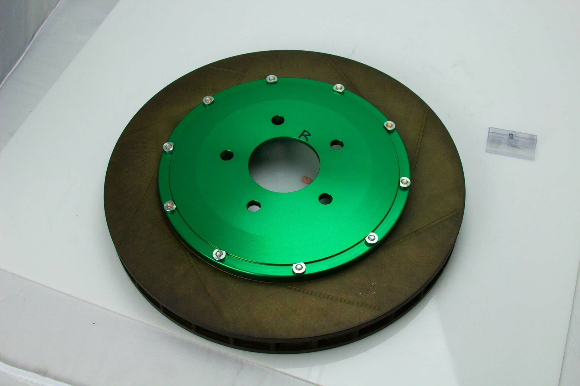 However, if you want the maximum rigidity but want to reduce weight, you should consider a two-piece rotor with an aluminum hat, as you see here. The aluminum hat reduces the weight of the rotor significantly since that large mass of metal is of a lighter material. You also gain the ability to change rotor faces and material without changing the rotor hats and this type of hat can allow you to work with a custom design by just changing the hat instead of the whole rotor. This does come at a price increase over a solid hat and rotor but if you’re going for maximum lightness, the price usually isn’t a concern at that point.