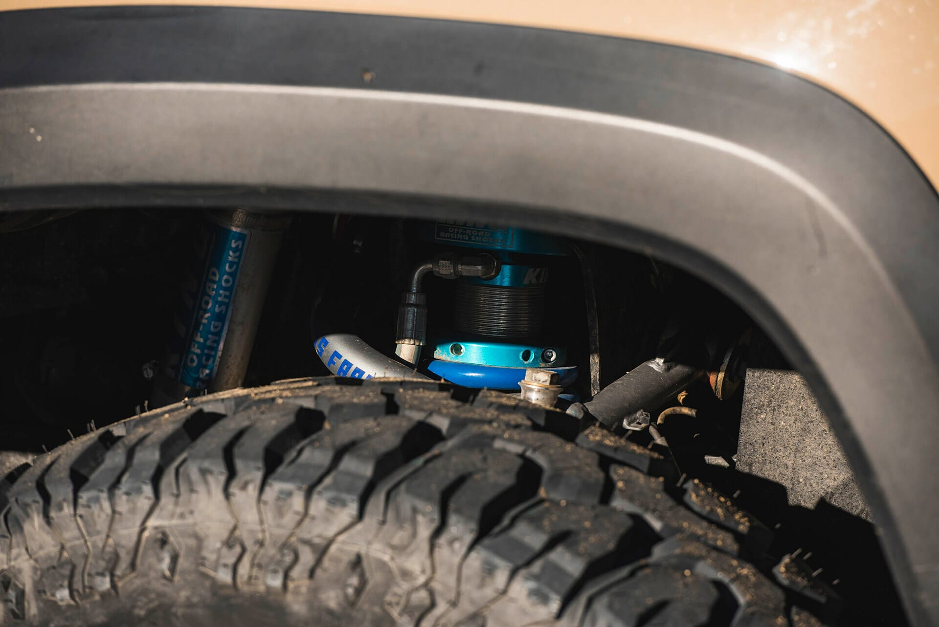 Keeping the tires planted is made possible by a custom suspension based on Total Chaos upper control arms in front, and Deaver progressive leaf springs in the rear; all damped by King Shocks.